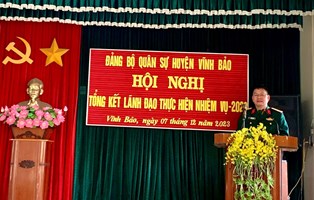 Ngày 7/12/2023, Đảng bộ Quân sự huyện Vĩnh Bảo tổ chức Hội nghị tổng kết lãnh đạo thực hiện nhiệm vụ năm 2023. Đồng chí Phạm Văn Luyện - Phó Bí thư Đảng ủy Quân sự huyện chủ trì hội nghị.