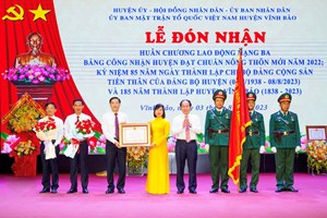 Sáng ngày 03/8/2023, huyện Vĩnh Bảo trọng thể tổ chức lễ đón nhận Huân chương lao động hạng Ba, Công bố quyết định công nhận huyện đạt chuẩn nông thôn mới năm 2022