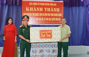 Ngày 22/7, Ban CHQS huyện Vĩnh Bảo (TP Hải Phòng) đã tổ chức Khánh thành và bàn giao nhà Tình nghĩa tặng gia đình ông Trịnh Quang Khánh là thương binh hạng 2/4 ở thôn Bắc Hải, xã Tân Liên, huyện Vĩnh...