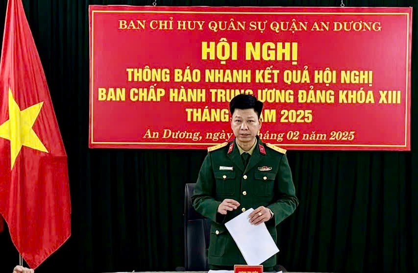 Sáng ngày 24/02, Đảng ủy Quân sự quận An Dương tổ chức Hội nghị thông báo nhanh kết quả hội nghị Ban chấp hành Trung ương Đảng khóa XIII. Đồng chí Trung tá Nguyễn Văn Công, Phó Bí thư Đảng ủy, Chính trị viên Ban Chỉ huy Quân sự quận chủ trì Hội nghị.