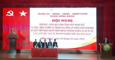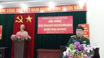 Chiều 11/01, Đảng bộ quân sự quận Hồng Bàng tổ chức hội nghị quán triệt, triển khai nghị quyết lãnh đạo thực hiện nhiệm vụ năm 2024 và khen thưởng tổ chức đảng, đảng viên năm 2023. Đồng chí Đào Văn...