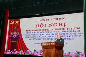 Sáng 9/4, tại Trung tâm Văn hoá Nguyễn Bỉnh Khiêm, Huyện uỷ Vĩnh Bảo tổ chức Hội nghị triển khai đợt sinh hoạt chính trị, tư tưởng nội dung bài viết “Tự hào và tin tưởng dưới lá cờ vẻ vang của Đảng,...
