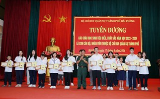 Ngày 17-8, Bộ Chỉ huy Quân sự (CHQS) TP Hải Phòng tổ chức Hội nghị tuyên dương, khen thưởng 63 học sinh tiêu biểu, xuất sắc là con cán bộ, nhân viên các cơ quan, đơn vị trong lực lượng vũ trang...