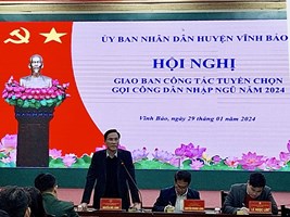 Chiều 29/1, UBND huyện Vĩnh Bảo tổ chức hội nghị giao ban về công tác tuyển quân năm 2024. Dự hội nghị có đồng chí Nguyễn Hoàng Long, Bí thư Huyện ủy, đồng chí Nguyễn Đức Cảnh, Phó Bí thư Huyện ủy,...