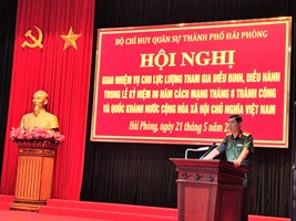 Sáng 21/5, Bộ CHQS thành phố Hải Phòng đã tổ chức Hội nghị giao nhiệm vụ cho lực lượng tham gia Lễ diễu binh, diễu hành trong Lễ kỷ niệm 80 năm Cách mạng tháng 8 thành công và Quốc khánh nước cộng...