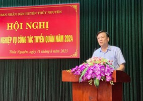 Sáng 31/8/2023, Ủy ban nhân dân huyện Thủy Nguyên tổ chức tập huấn nghiệp vụ công tác tuyển chọn và gọi công dân nhập ngũ năm 2024. Đồng chí Đinh Chính Quyền – Phó Chủ tịch Ủy ban nhân dân huyện dự...