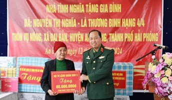 Chiều ngày 12/12, Bộ Tư lệnh Quân khu 3 đã tổ chức Khánh thành và bàn giao nhà Tình nghĩa tặng gia đình bà Nguyễn Thị Nghĩa là thương binh hạng 4/4 ở thôn Vụ Nông, xã Đại Bản, huyện An Dương, thành...