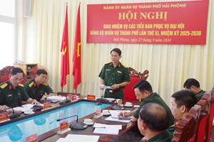 Ngày 27/9, Đảng ủy Quân sự thành phố Hải Phòng tổ chức quán triệt và triển khai thực hiện các văn bản lãnh đạo, chỉ đạo của Bộ Chính trị, Ban Thường vụ Quân ủy Trung ương, Ban Thường vụ Đảng ủy Quân...