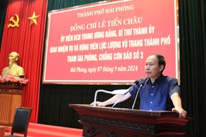 Sáng 7/9. Đồng chí Lê Tiến Châu, Ủy viên Ban chấp hành Trung ương Đảng, Bí thư Thành ủy, Bí thư Đảng ủy quân sự thành phố, giao nhiệm vụ và động viên cán bộ, chiến sĩ LLVT thành phố tham gia phòng,...