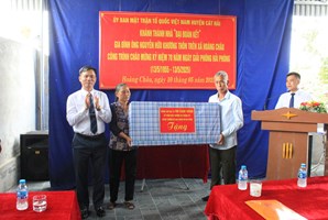 Chiều 10/5, Huyện ủy, HĐND, UBND, UBMTTQ Việt Nam huyện Cát Hải khánh thành nhà Đại đoàn kết tặng gia đình ông Nguyễn Hữu Khương, hiện ở thôn Trên, xã Hoàng Châu, huyện Cát Hải thuộc diện hộ gia...
