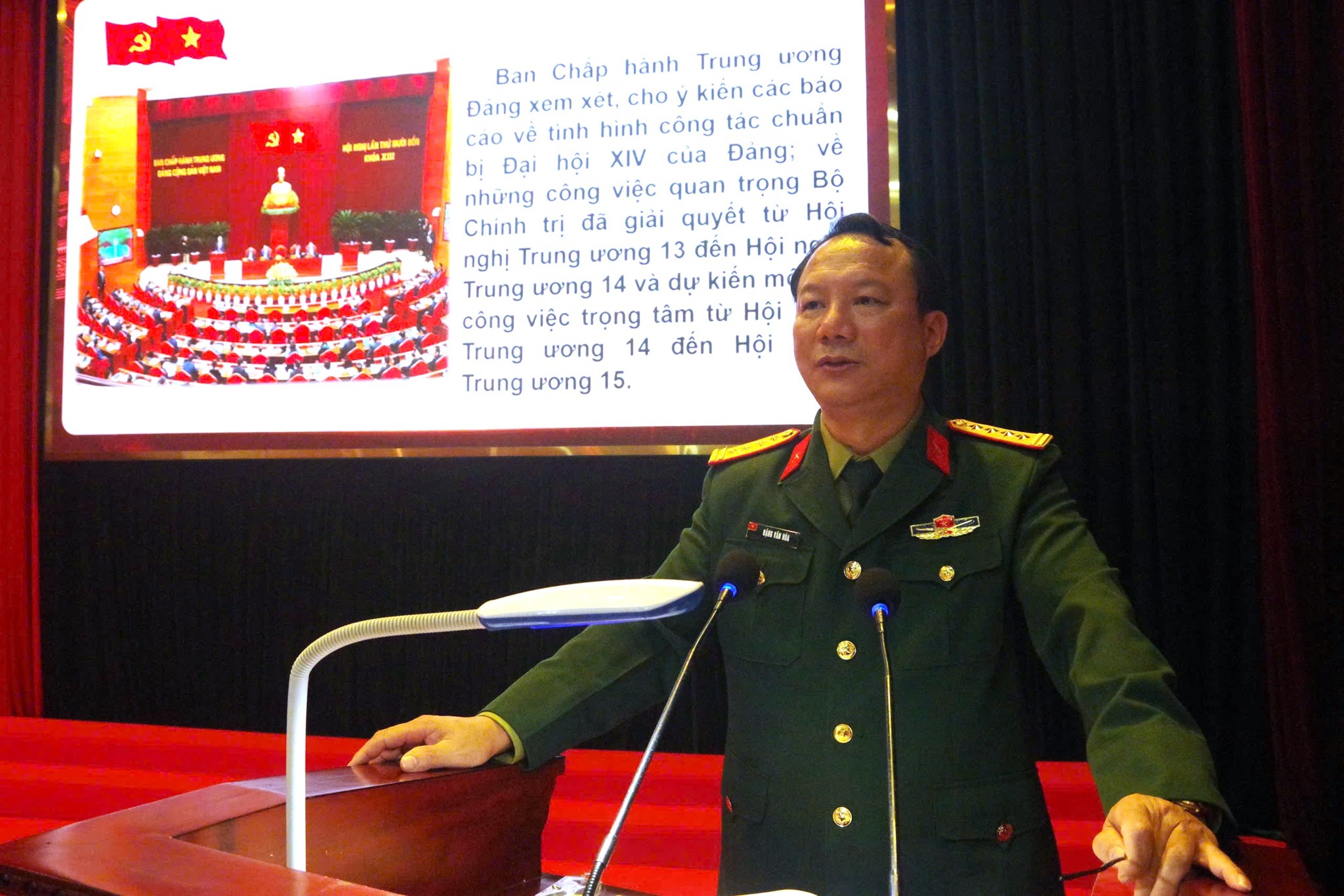 Tại hội nghị, Đồng chí Chính ủy Bộ CHQS thành phố đã truyền đạt những nội dung cốt lõi của Hội nghị Trung ương lần thứ 14, trong đó tập trung vào: Công tác chuẩn bị nhân sự Ban Chấp hành Trung ương khóa XIV; phương hướng xây dựng Chiến lược phát triển kinh tế - xã hội giai đoạn tiếp theo; công tác xây dựng Đảng, xây dựng hệ thống chính trị; định hướng nhiệm vụ quốc phòng, an ninh trong bối cảnh mới.