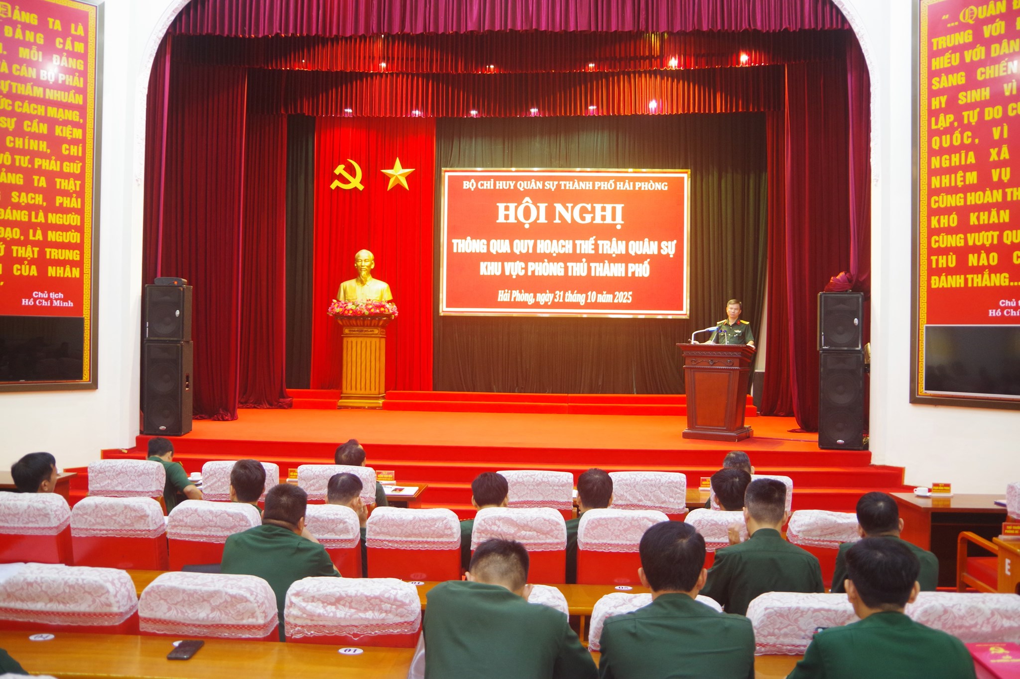Sáng 31/10, Bộ Chỉ huy quân sự (CHQS) thành phố Hải Phòng tổ chức hội nghị thông qua quy hoạch thế trận quân sự trong khu vực phòng thủ (KVPT) thành phố giai đoạn 2025 - 2030, tầm nhìn đến năm 2045. Đại tá Bùi Xuân Thắng, Ủy viên Ban Thường vụ Thành ủy , Chỉ huy trưởng Bộ CHQS TP chủ trì hội nghị. Sáng 31/10, Bộ Chỉ huy quân sự (CHQS) thành phố Hải Phòng tổ chức hội nghị thông qua quy hoạch thế trận quân sự trong khu vực phòng thủ (KVPT) thành phố giai đoạn 2025 - 2030, tầm nhìn đến năm 2045. Đại tá Bùi Xuân Thắng, Ủy viên Ban Thường vụ Thành ủy , Chỉ huy trưởng Bộ CHQS TP chủ trì hội nghị.