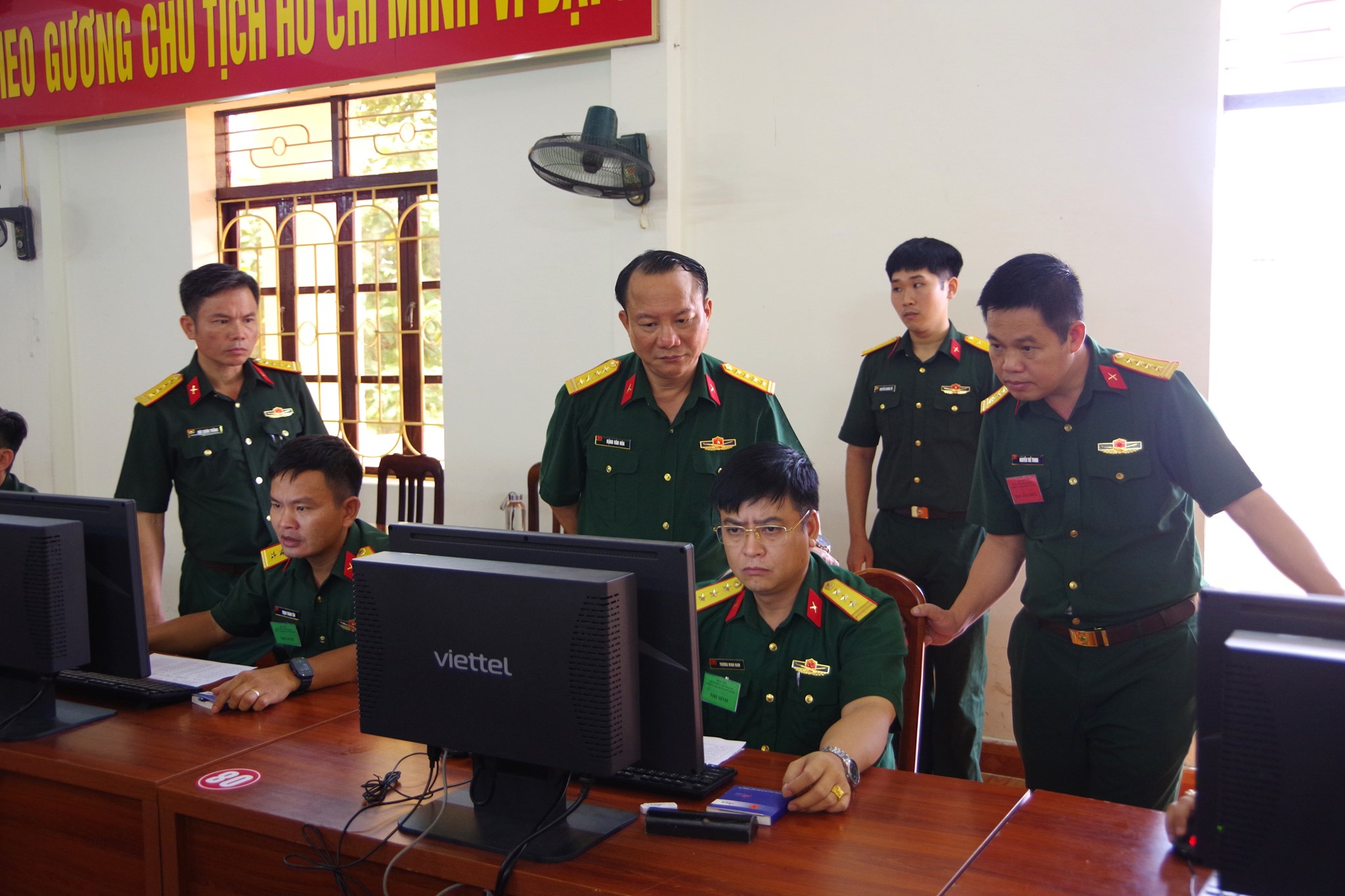 Lãnh đạo Bộ CHQS TP kiểm tra phần thi thực hành của các thí sinh.