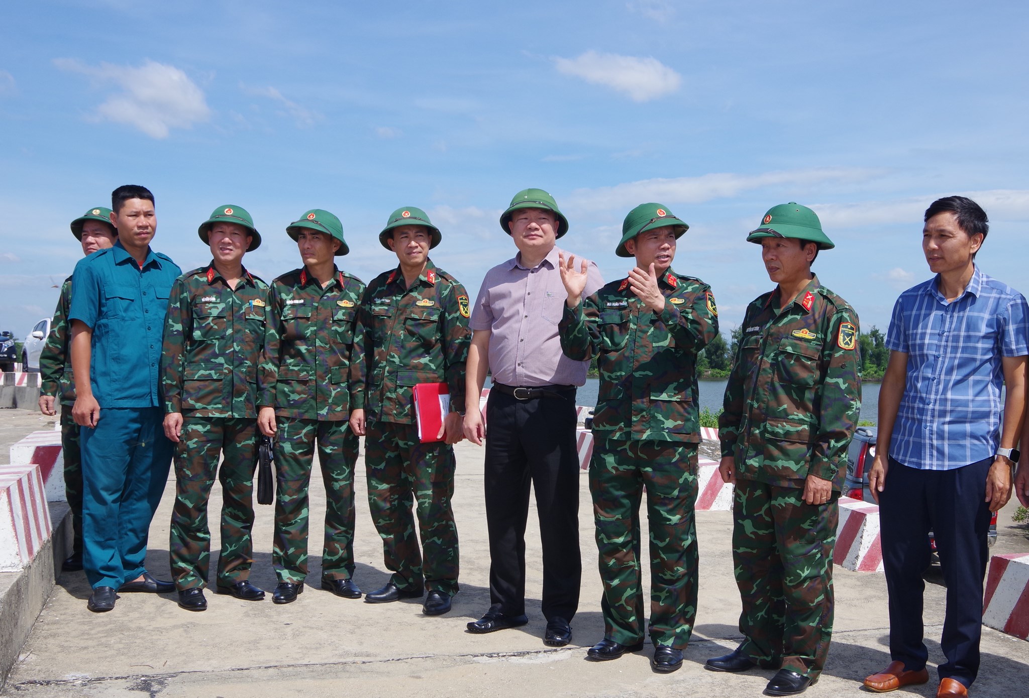Đại tá Bùi Xuân Thắng, Uỷ viên Ban Thường vụ Thành uỷ, Chỉ huy trưởng Bộ Chỉ huy quân sự thành phố kiểm tra tuyến đê xung yếu tại Đặc khu Cát Hải.
