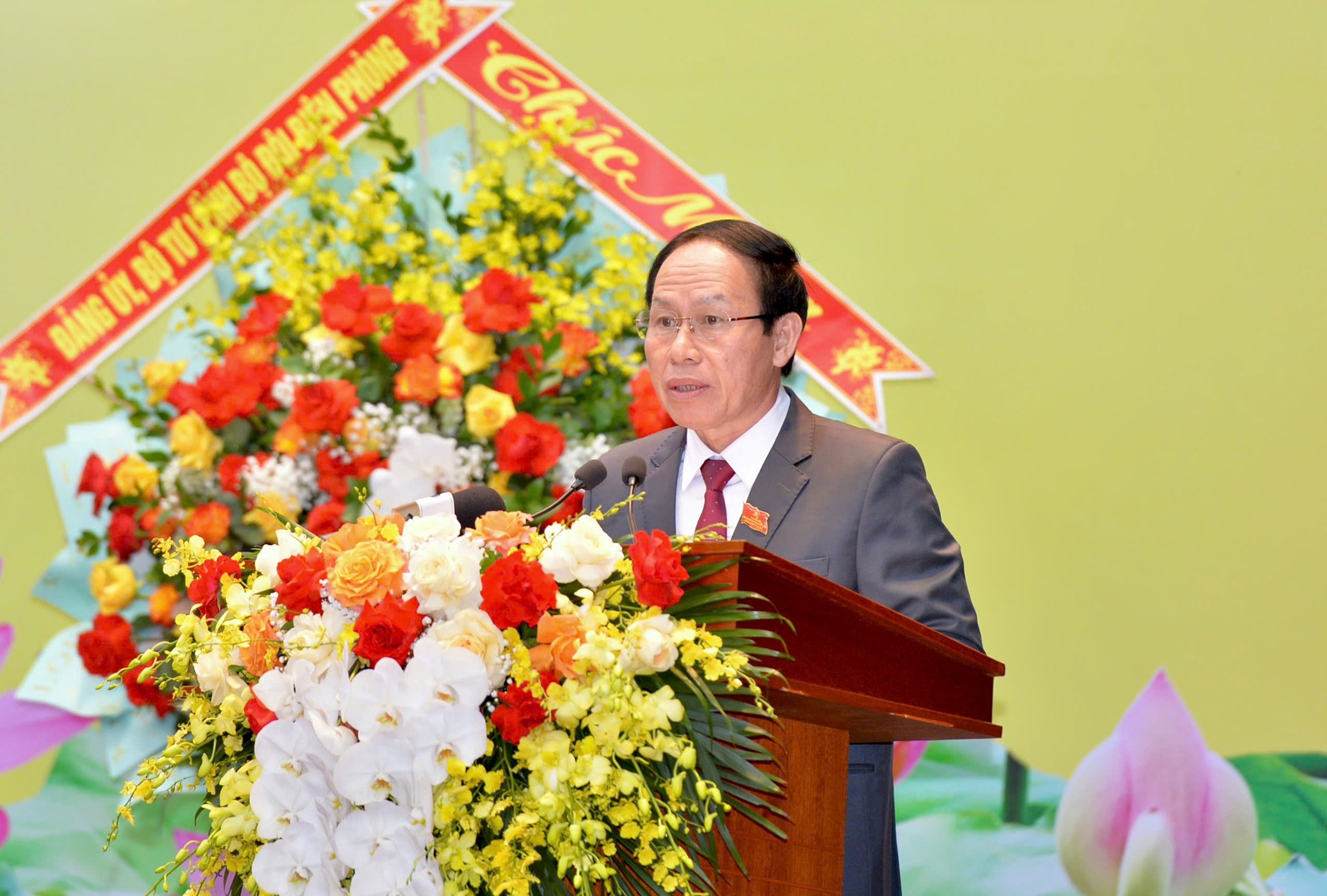 Đồng chí Lê Tiến Châu, Ủy viên Trung ương Đảng, Bí thư Thành ủy, Trưởng đoàn Đại biểu Quốc hội thành phố, Bí thư Đảng ủy Quân sự thành phố Hải Phòng phát biểu tại Đại hội.