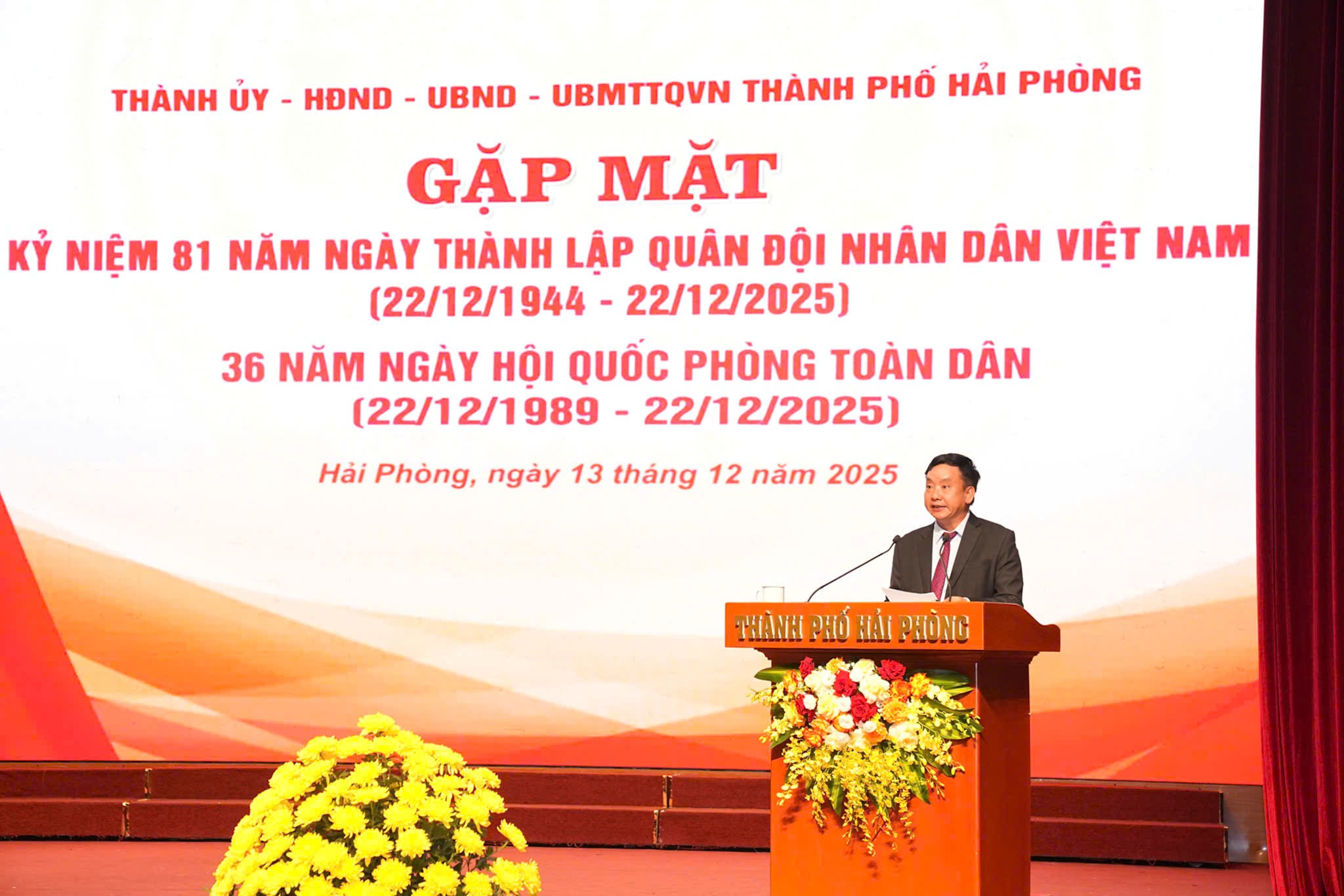 Sáng 13/12, Thành ủy, HĐND, UBND, Ủy ban MTTQ Việt Nam thành phố Hải Phòng đã tổ chức gặp mặt các đồng chí lãnh đạo, nguyên lãnh đạo quân đội, cán bộ quân đội nghỉ hưu trên địa bàn thành phố nhân dịp kỷ niệm 81 năm Ngày thành lập Quân đội nhân dân Việt Nam (22/12/1944 - 22/12/2025) và 36 năm Ngày hội Quốc phòng toàn dân (22/12/1989 - 22/12/2025).