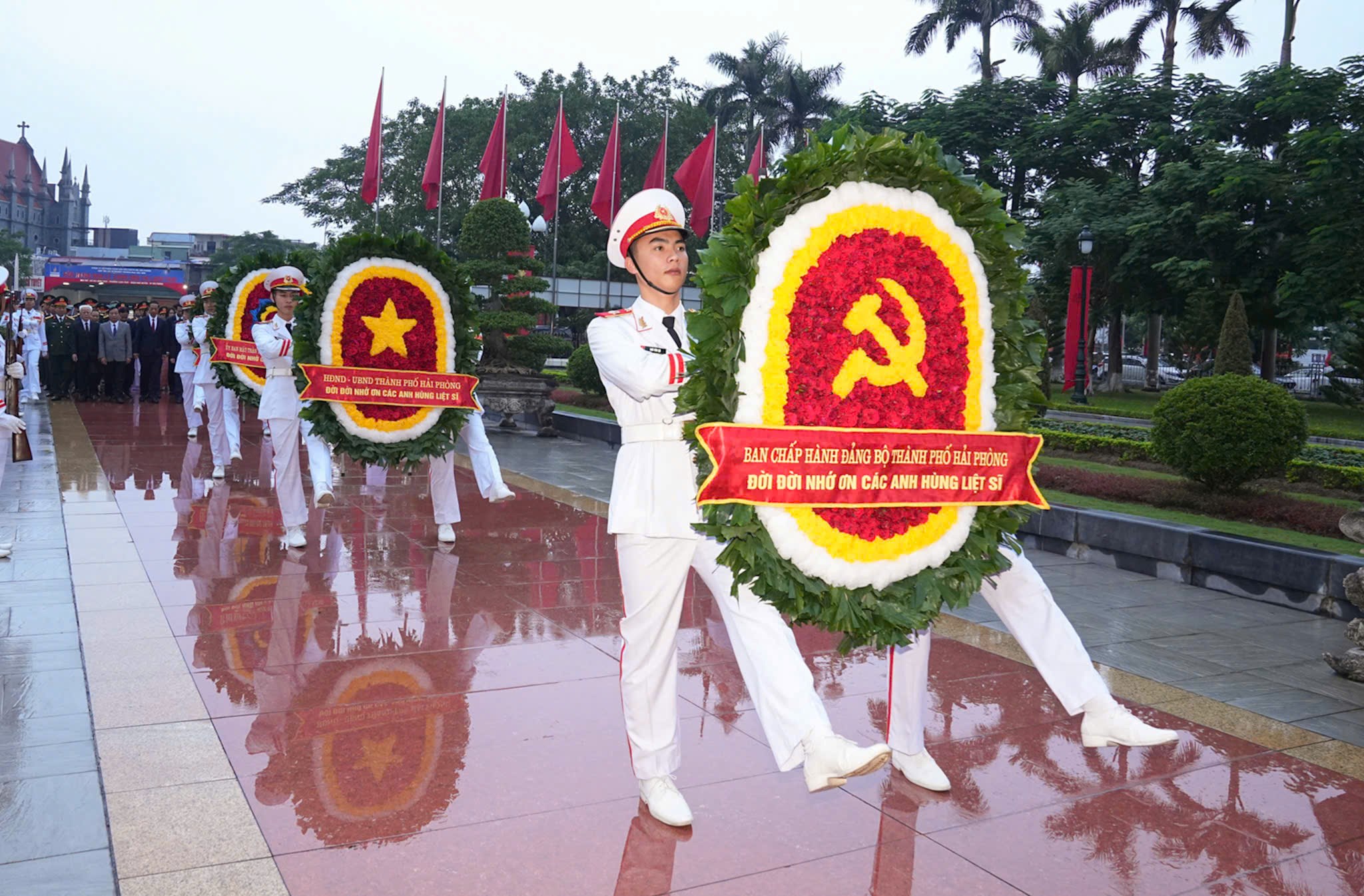 Trước đó, đoàn đại biểu Thành ủy, HĐND, UBND, Ủy ban MTTQ Việt Nam thành phố Hải Phòng đã tổ chức lễ dâng hương, dâng hoa tưởng niệm các anh hùng liệt sĩ tại Đài tưởng niệm các anh hùng liệt sĩ thành phố và Tượng đài đồng chí Nguyễn Đức Cảnh.