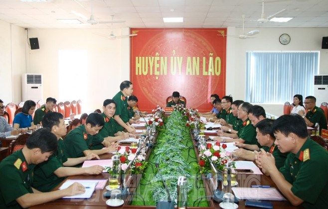 Chiều 20-9, tại Huyện ủy An Lão, Đoàn công tác Khối thi đua lực lượng vũ trang (LLVT) 9 tỉnh, thành phố trên địa bàn Quân khu 3 do Đồng chí Đại tá Phạm Đức Kiên - Chính ủy Bộ Chỉ huy Quân sự (CHQS) tỉnh Thái Bình - đơn vị khối trưởng làm Trưởng đoàn, khảo sát kết quả thực hiện phong trào Thi đua Quyết thắng năm 2023 tại Bộ CHQS thành phố và Ban CHQS huyện An Lão. Đồng chí Đại tá Phạm Văn Vương, Phó Bí thư Thường trực Đảng ủy Quân sự, Chính ủy Bộ CHQS thành phố tiếp và làm việc với đoàn; cùng dự có lãnh đạo Huyện ủy An Lão.