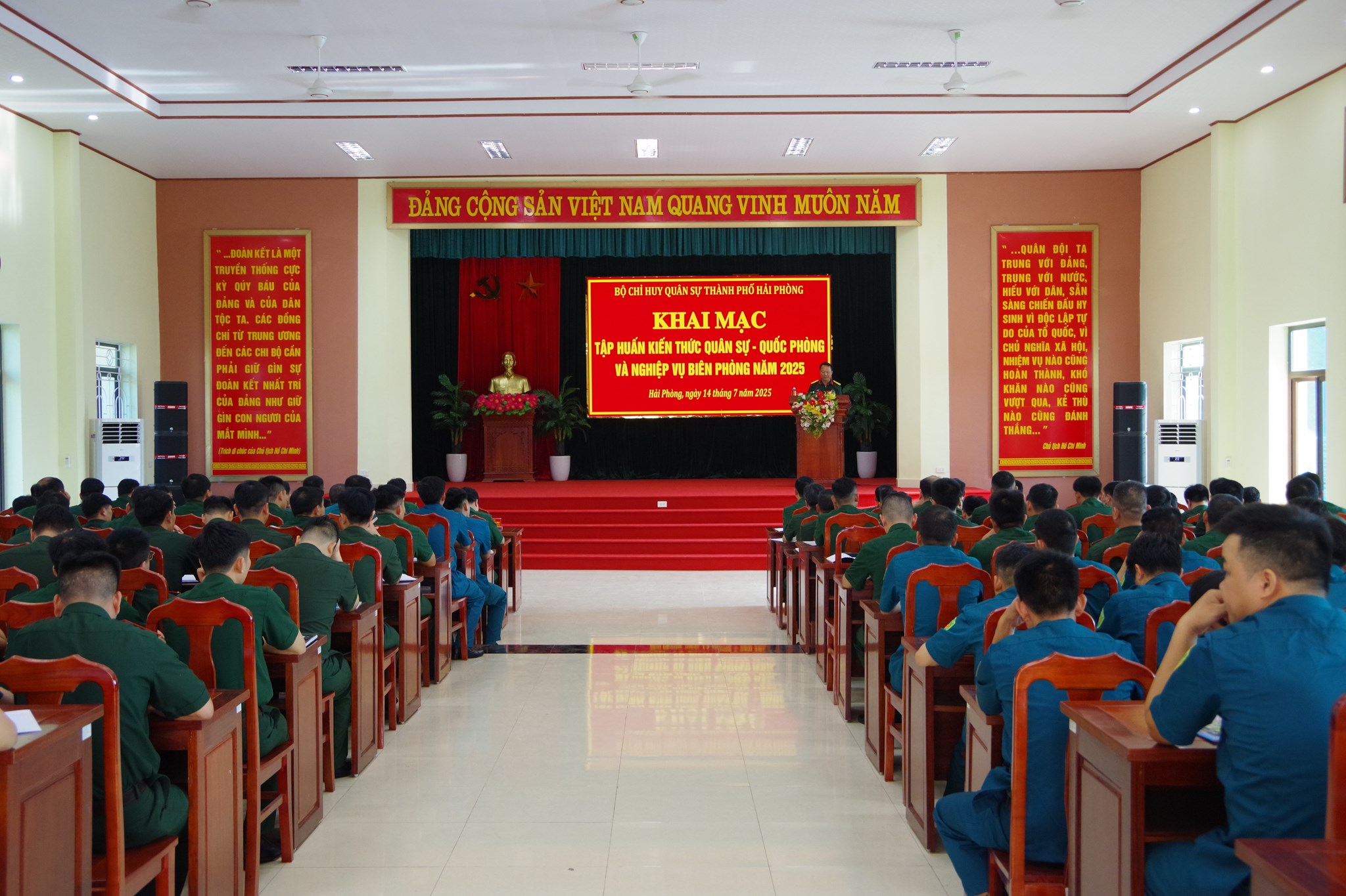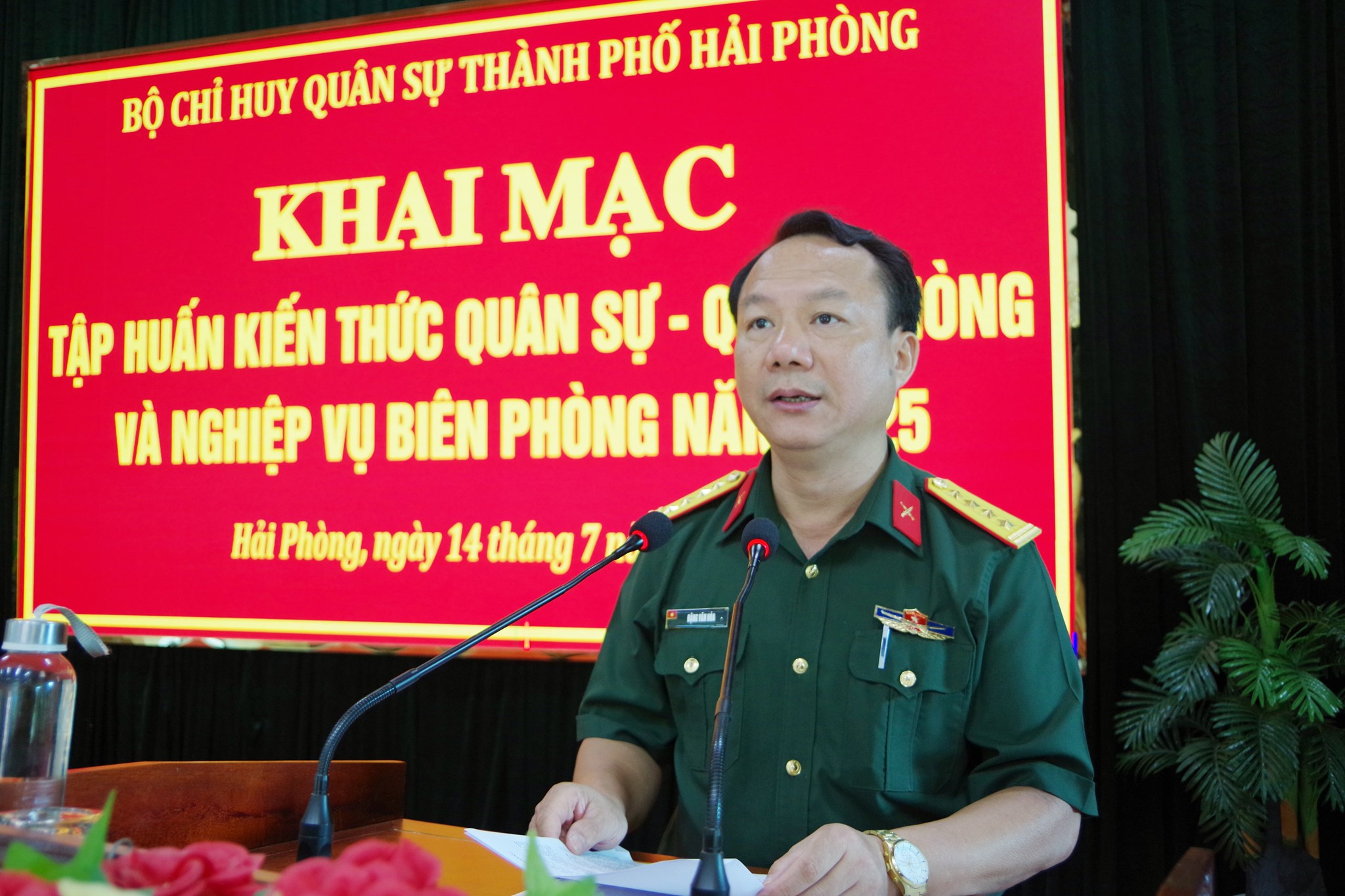 Sáng 14/7, Bộ Chỉ huy quân sự (CHQS) TP Hải Phòng tổ chức khai mạc các lớp tập huấn về quân sự, quốc phòng và nghiệp vụ biên phòng năm 2025. Đại tá Bùi Xuân Thắng, Ủy viên Ban Thường vụ Thành ủy, Chỉ huy trưởng Bộ CHQS TP dự và chủ trì tại Ban Chỉ huy Bộ đội Biên phòng; Đại tá Đặng Văn Hòa, Phó Bí thư Thường trực Đảng ủy, Chính ủy Bộ CHQS TP dự và chủ trì tại Trung đoàn Bộ binh 836 (Bộ CHQS TP).