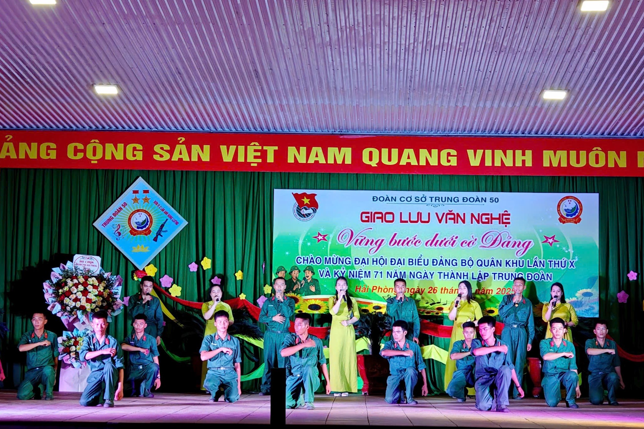 Tối 26/6, Đoàn cơ sở Trung đoàn 50 (Bộ CHQS TP Hải Phòng) tổ chức đêm giao lưu văn nghệ với chủ đề “Vững bước dưới cờ Đảng”, hướng tới Đại hội Đại biểu Đảng bộ Quân khu 3 lần thứ X và kỷ niệm 71 năm Ngày truyền thống Trung đoàn (1/7/1954 - 1/7/2025). Dự và chỉ đạo chương trình có Đại tá Đặng Văn Hòa, Chính ủy Bộ CHQS thành phố; Đại tá Nguyễn Thế Trung, Chủ nhiệm Chính trị Bộ CHQS thành phố; đại biểu Phòng Chính trị; các đồng chí trong Đảng ủy, chỉ huy Trung đoàn 50, đại diện chỉ huy các cơ quan, đơn vị và đông đảo cán bộ, đoàn viên, thanh niên, cùng đơn vị kết nghĩa.