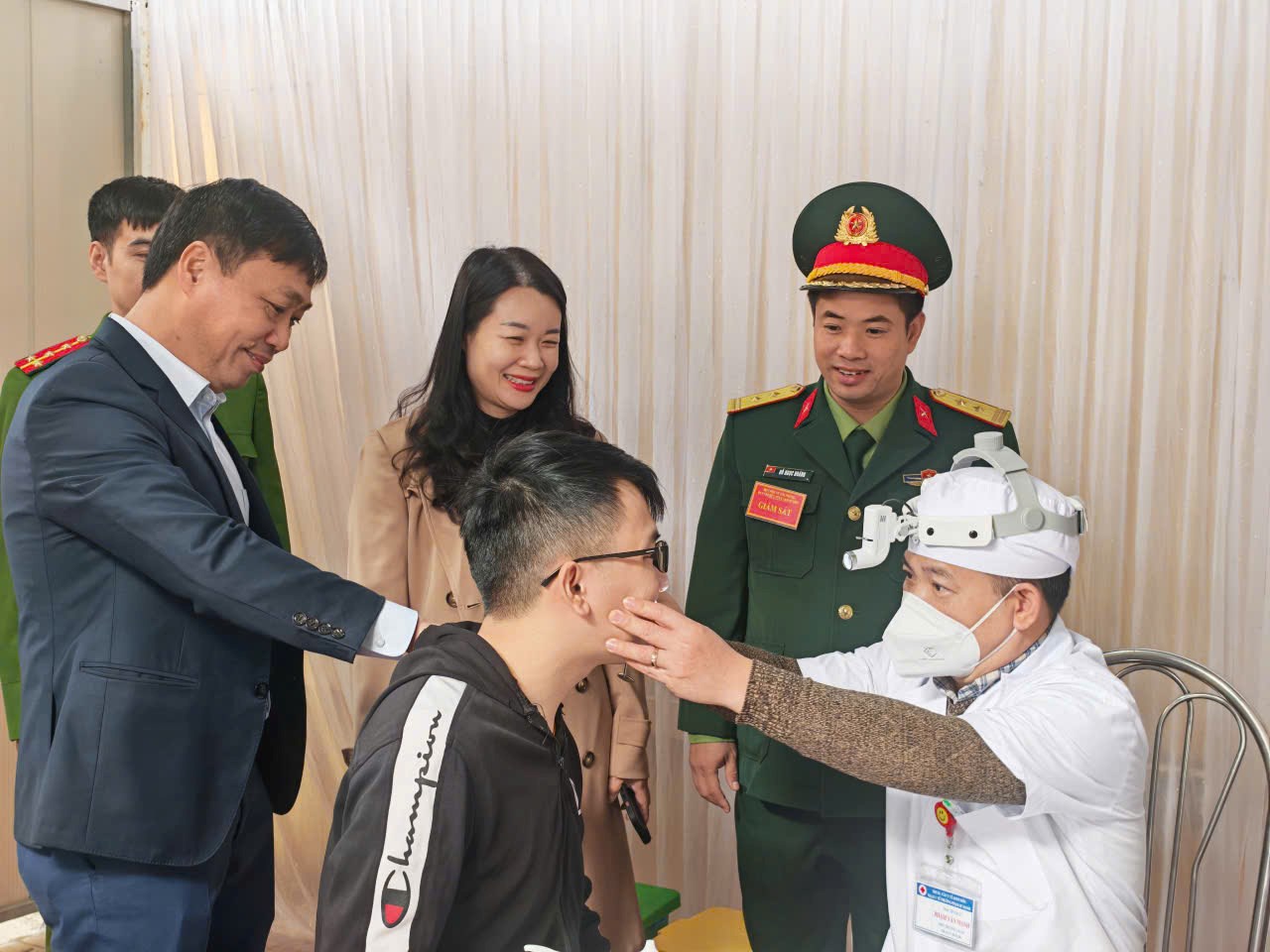Lãnh đạo Ban Chỉ huy PTKV 2 cùng lãnh đạo địa phương động viên các thanh niên tham gia khám tuyển NVQS