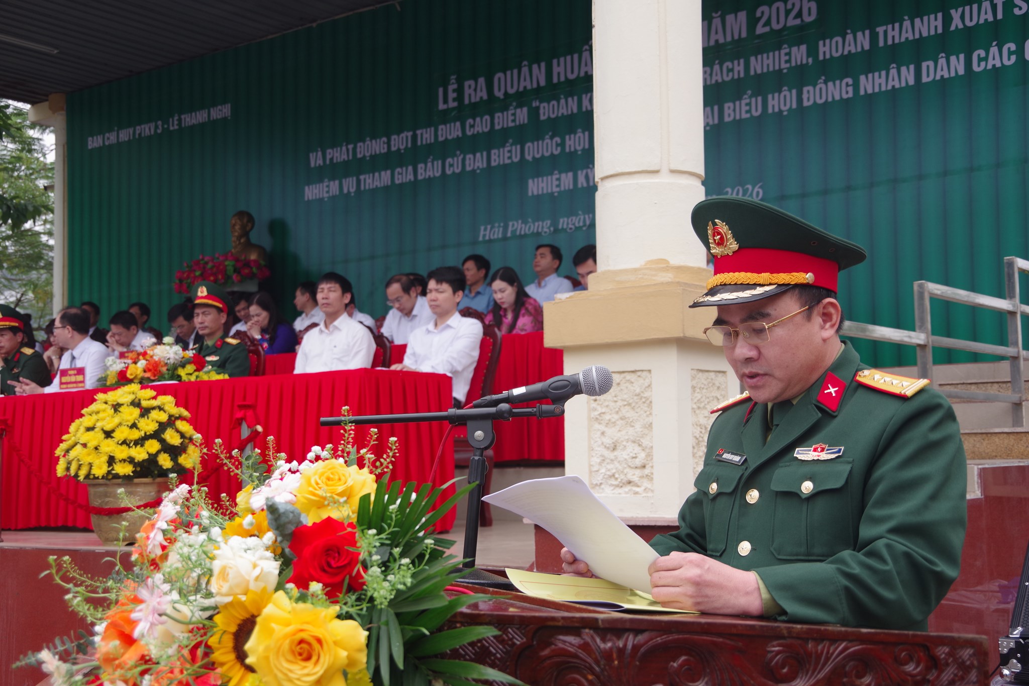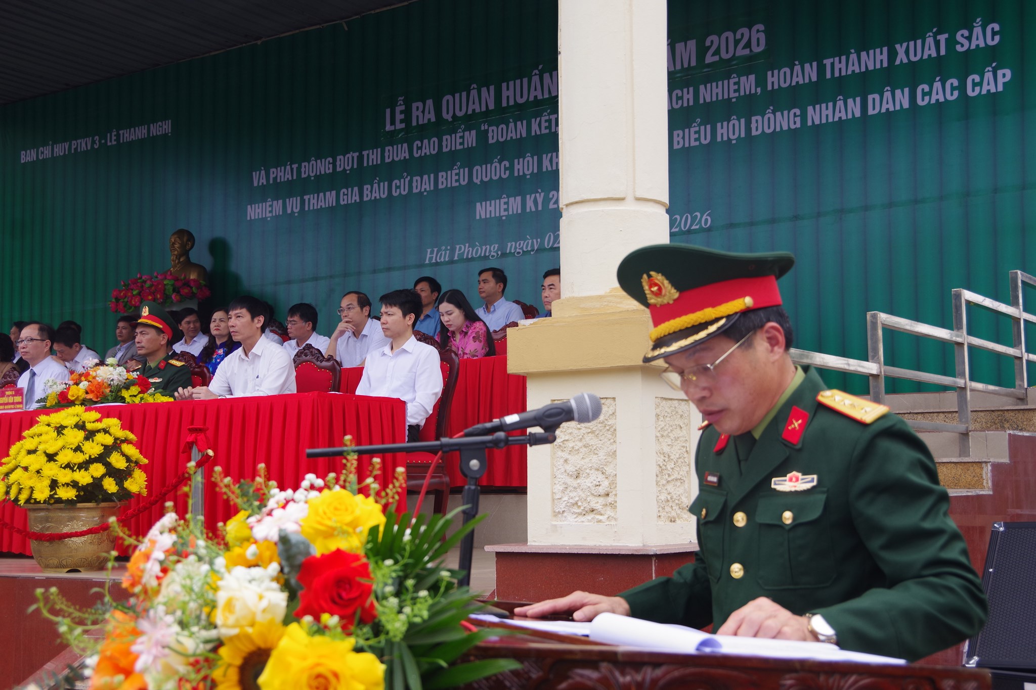 Sáng 02/3, Ban Chỉ huy PTKV3 - Lê Thanh Nghị phối hợp Ban CHQS 30 xã, phường trên địa bàn tổ chức Lễ ra quân huấn luyện năm 2026 và phát động đợt thi đua cao điểm với chủ đề: “Đoàn kết, dân chủ, trách nhiệm, hoàn thành xuất sắc nhiệm vụ tham gia bầu cử đại biểu Quốc hội khóa XIV và đại biểu Hội đồng nhân dân các cấp nhiệm kỳ 2026 - 2031”. Dự và phát biểu chỉ đạo có đồng chí Đại tá Nguyễn Huy Khánh - Phó Chỉ huy trưởng Bộ CHQS thành phố Hải Phòng.