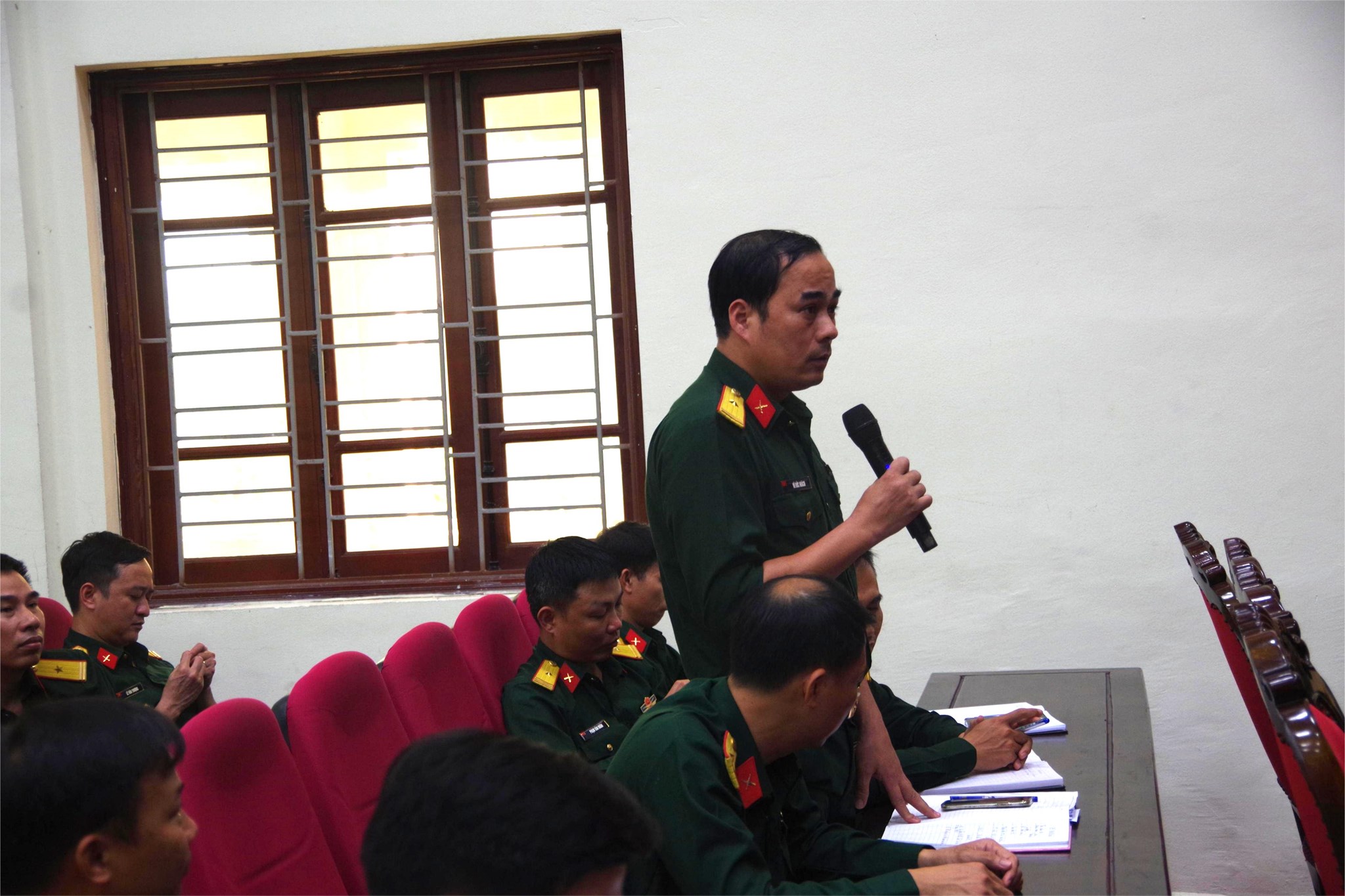 Đồng chí Đại tá Nguyễn Huy Khánh, Phó Chỉ huy trưởng Bộ CHQS thành phố Hải Phòng chủ trì hội nghị