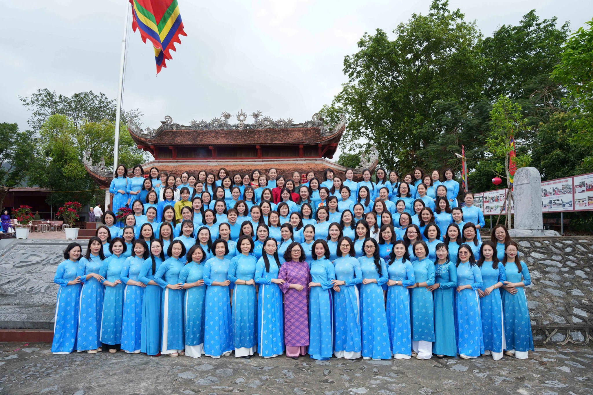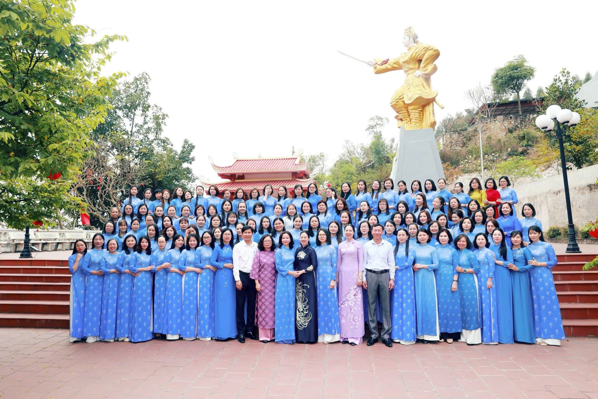 Đoàn công tác chụp ảnh lưu niệm tại Đền thờ Nữ tiến sĩ Nguyễn Thị Duệ