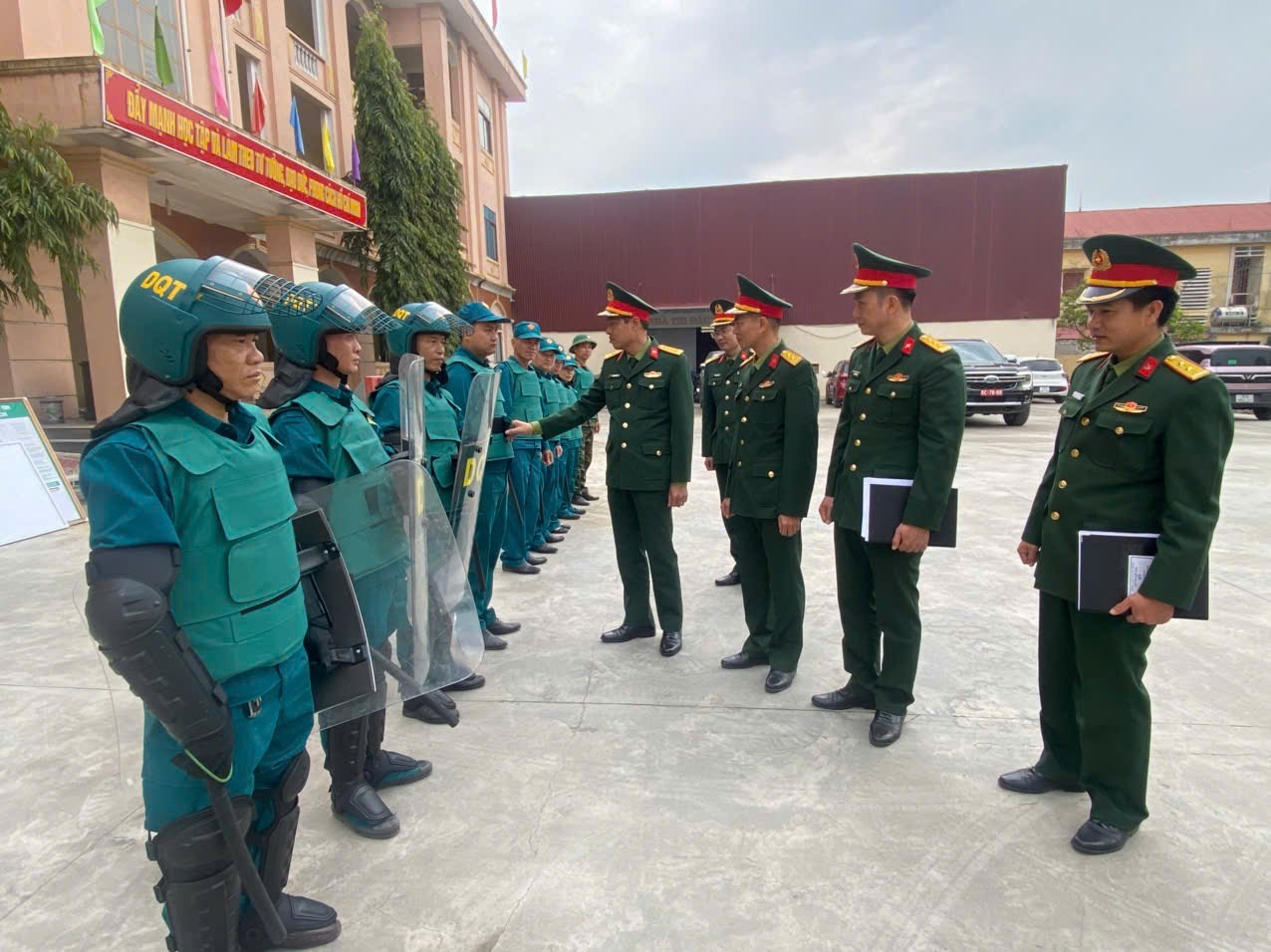 Đại tá Phạm Hồng Thuất – Phó Chỉ huy trưởng, Tham mưu trưởng Bộ CHQS thành phố kiểm tra Trung đội DQCĐ.