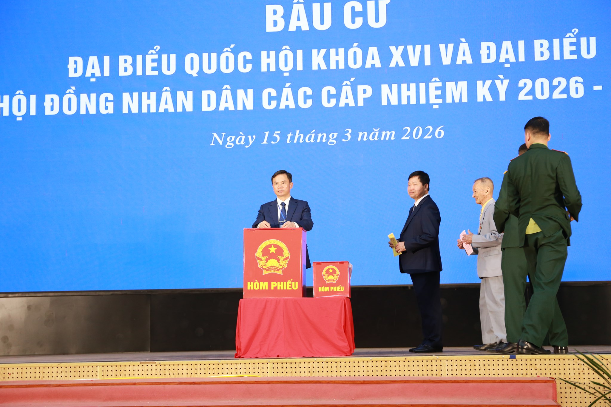 Sáng 15/3, cùng với cử tri cả nước và cử tri trên địa bàn thành phố tham gia ngày hội non sông, đồng chí Đại tá Bùi Xuân Thắng, Ủy viên Ban Thường vụ Thành ủy, Chỉ huy trưởng Bộ CHQS thành phố Hải Phòng dự lễ khai mạc và bỏ phiếu bầu cử đại biểu Quốc hội khóa XVI và đại biểu HĐND các cấp nhiệm kỳ 2026 - 2031 tại Khu vực bỏ phiếu số 2, Đặc khu Cát Hải.