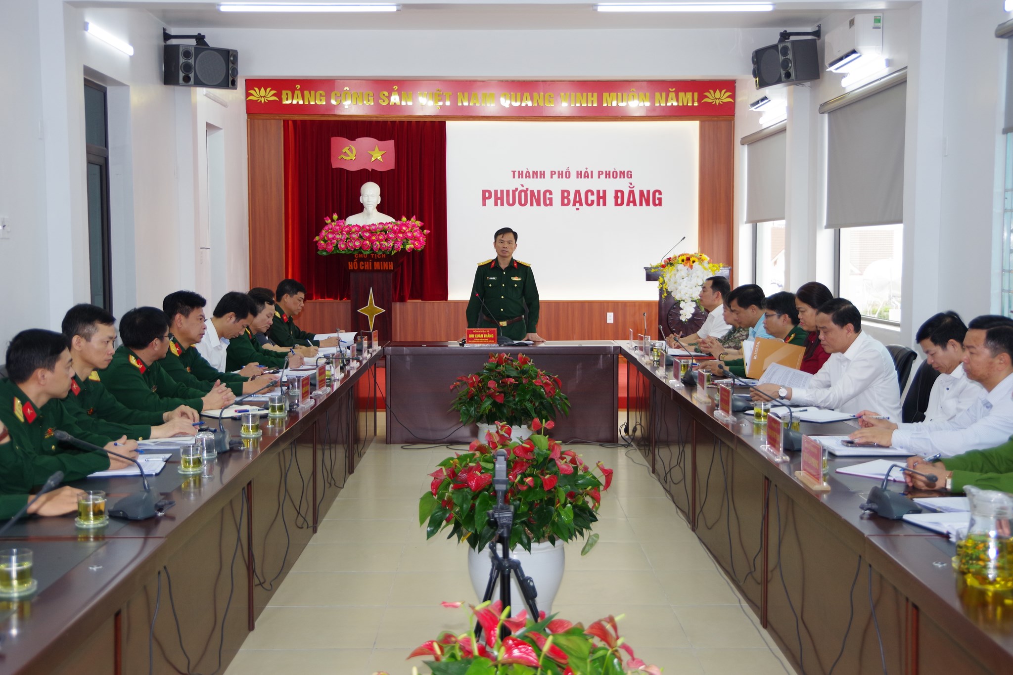 Trong 02 ngày 25/3 - 26/3, Đoàn công tác số 219 của Thành ủy Hải Phòng do Đại tá Bùi Xuân Thắng, Ủy viên Ban Thường vụ Thành ủy, Chỉ huy trưởng Bộ Chỉ huy Quân sự (CHQS) thành phố làm Trưởng đoàn đã làm việc với Ban Thường vụ Đảng ủy các địa phương: phường Thành Đông, xã Hà Đông và phường Bạch Đằng về công tác lãnh đạo, chỉ đạo và tổ chức thực hiện nhiệm vụ quốc phòng, quân sự địa phương.