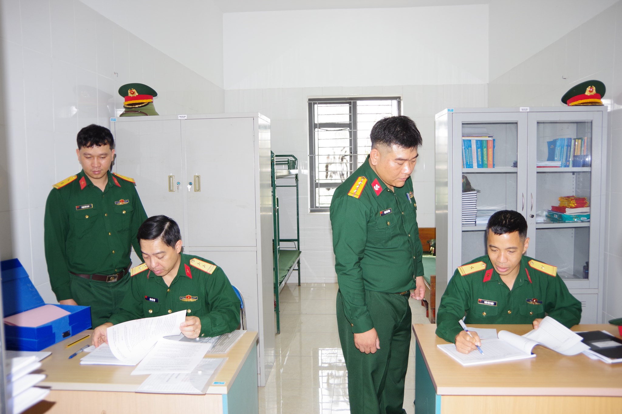 Đoàn công tác kiểm tra hệ thống sổ sách, kế hoạch huấn luyện, sẵn sàng chiến đấu tại Ban CHQS phường Thành Đông
