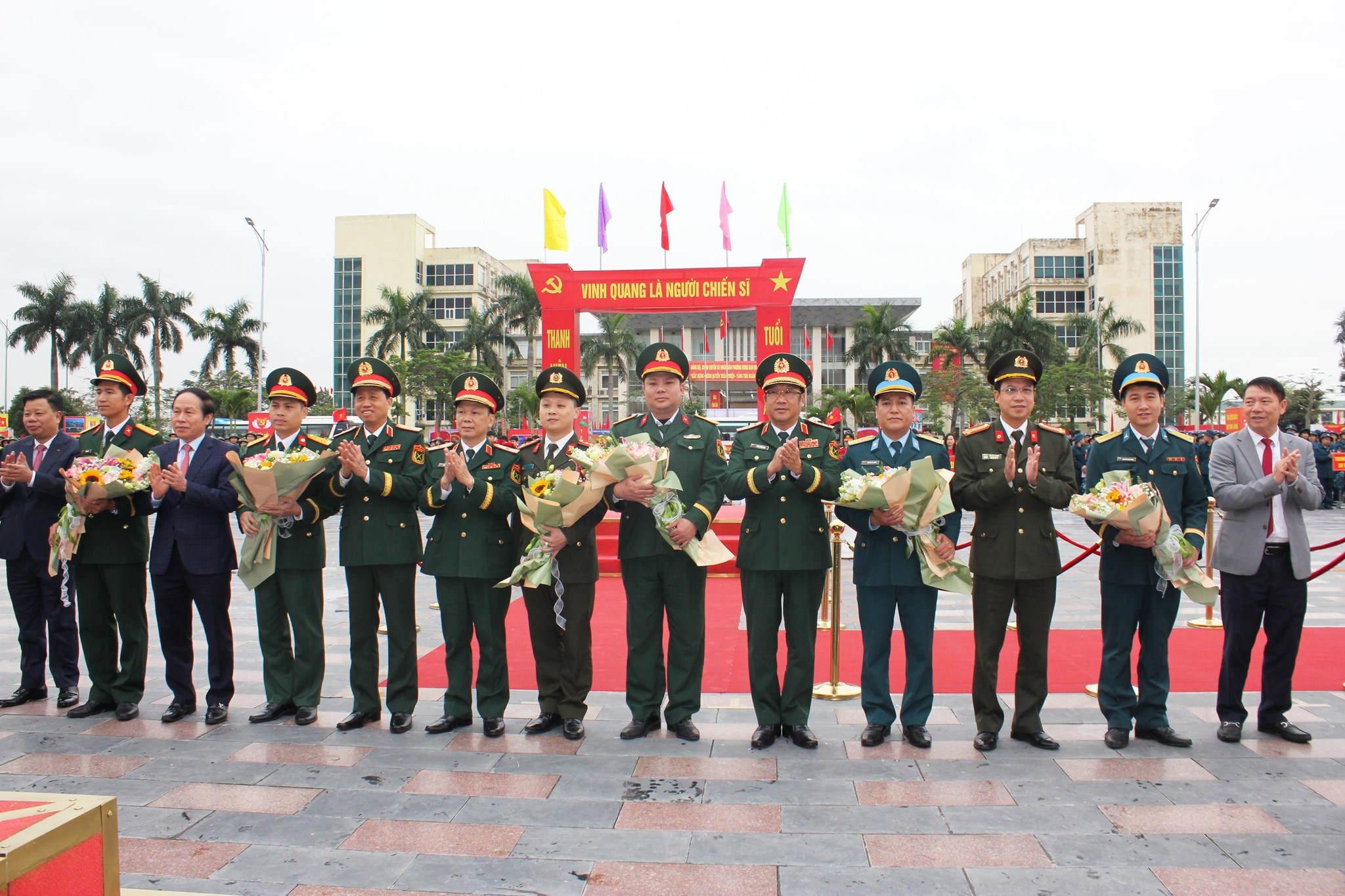 Các đại biểu tặng hoa đơn vị nhận quân
