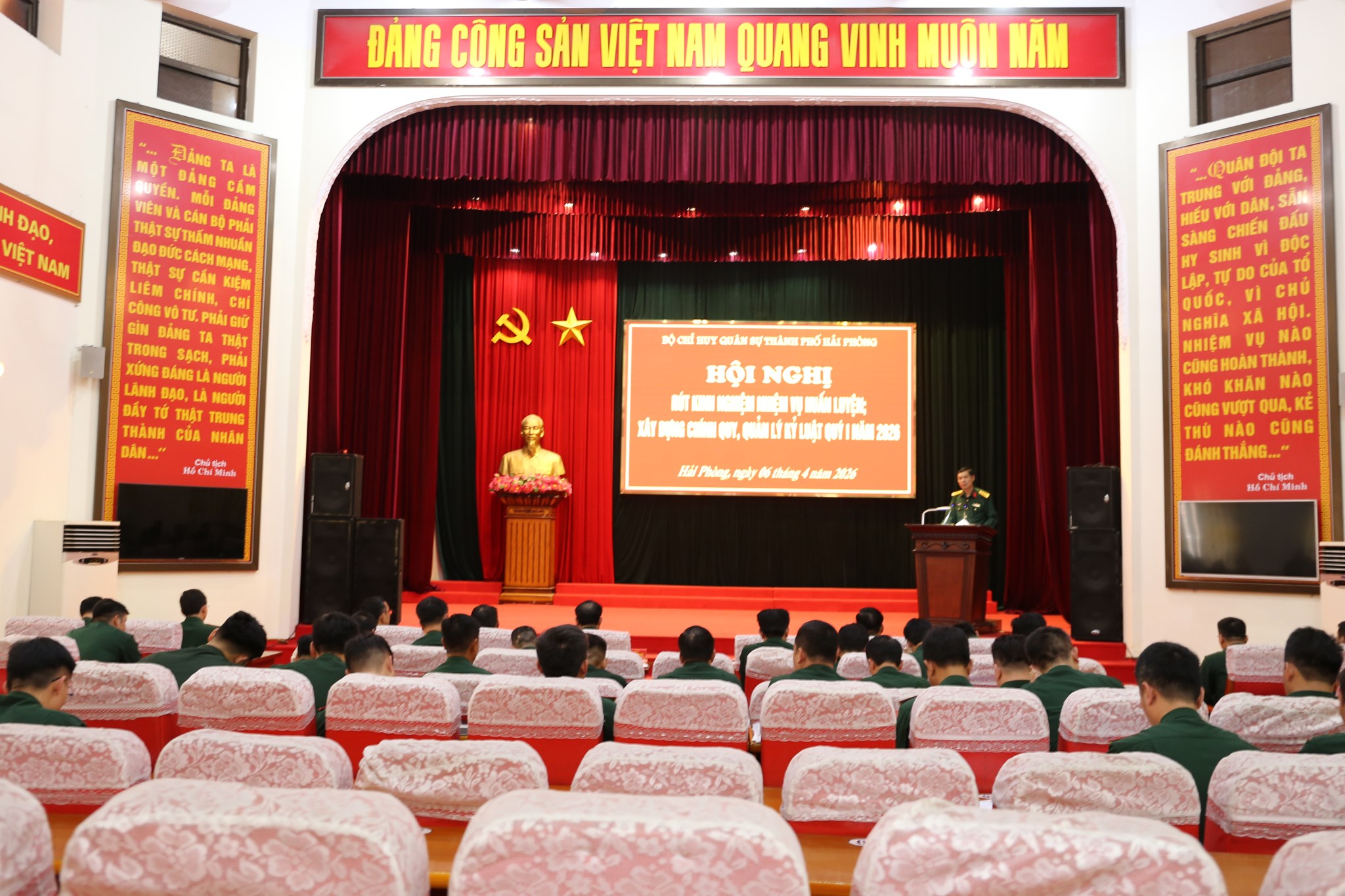 Chiều 06/4, Bộ CHQS thành phố tổ chức hội nghị rút kinh nghiệm nhiệm vụ huấn luyện; xây dựng chính quy, quản lý kỷ luật quý I năm 2026. Đồng chí Đại tá Đặng Văn Hòa, Thành ủy viên, Phó Bí thư Thường trực Đảng ủy, Chính ủy Bộ CHQS thành phố dự và chỉ đạo, Đại tá Phạm Hồng Thuất, Ủy viên Thường vụ Đảng ủy, Phó Chỉ huy trưởng - Tham mưu trưởng Bộ CHQS thành phố chủ trì hội nghị; tham dự còn có các đồng chí trong Đảng ủy, Thủ trưởng Bộ chỉ huy và chỉ huy các cơ quan, đơn vị.