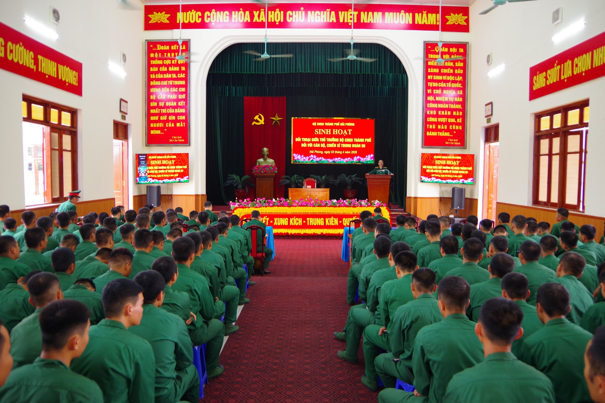 Chiều 03/4, Bộ CHQS thành phố Hải Phòng tổ chức gặp gỡ, trao đổi, đối thoại trực tiếp với chiến sĩ mới đang huấn luyện tại Trung đoàn 50. Đại tá Đặng Văn Hòa, Thành ủy viên, Phó Bí thư Thường trực Đảng ủy, Chính ủy Bộ CHQS thành phố chủ trì buổi đối thoại. Tham dự buổi đối thoại có chỉ huy các cơ quan chức năng Bộ CHQS thành phố.