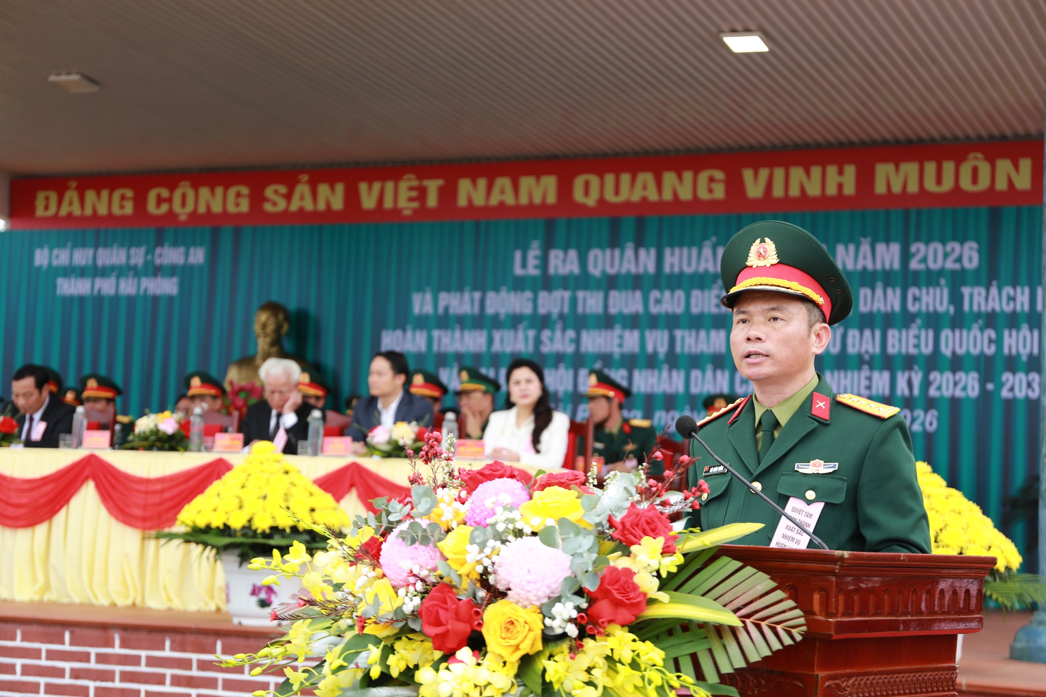 Sáng 02/3, tại Trung đoàn 50, Bộ CHQS TP. Hải Phòng, Công an thành phố phối hợp tổ chức Lễ ra quân huấn luyện năm 2026 và phát động đợt thi đua cao điểm với chủ đề: “Đoàn kết, dân chủ, trách nhiệm, hoàn thành xuất sắc nhiệm vụ tham gia bầu cử đại biểu Quốc hội khóa XVI và đại biểu Hội đồng nhân dân các cấp nhiệm kỳ 2026 - 2031”. Thiếu tướng Khúc Thành Dư, Ủy viên Thường vụ Đảng ủy, Phó Chính ủy Quân khu dự và chỉ đạo.
