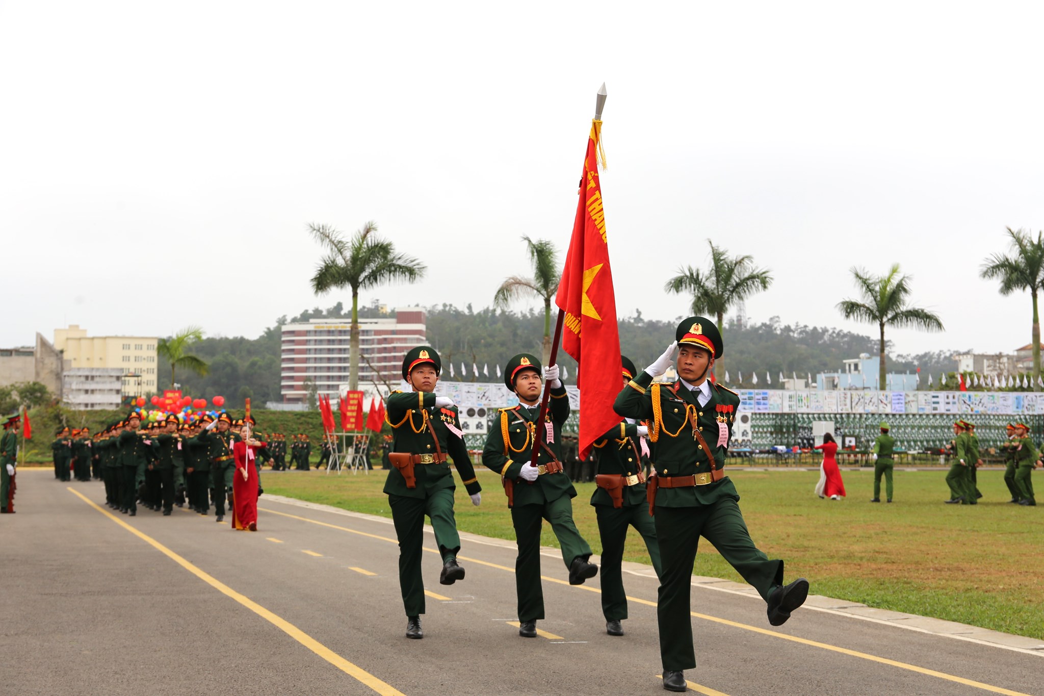 Các đơn vị tham gia duyệt đội ngũ tại lễ ra quân huấn luyện