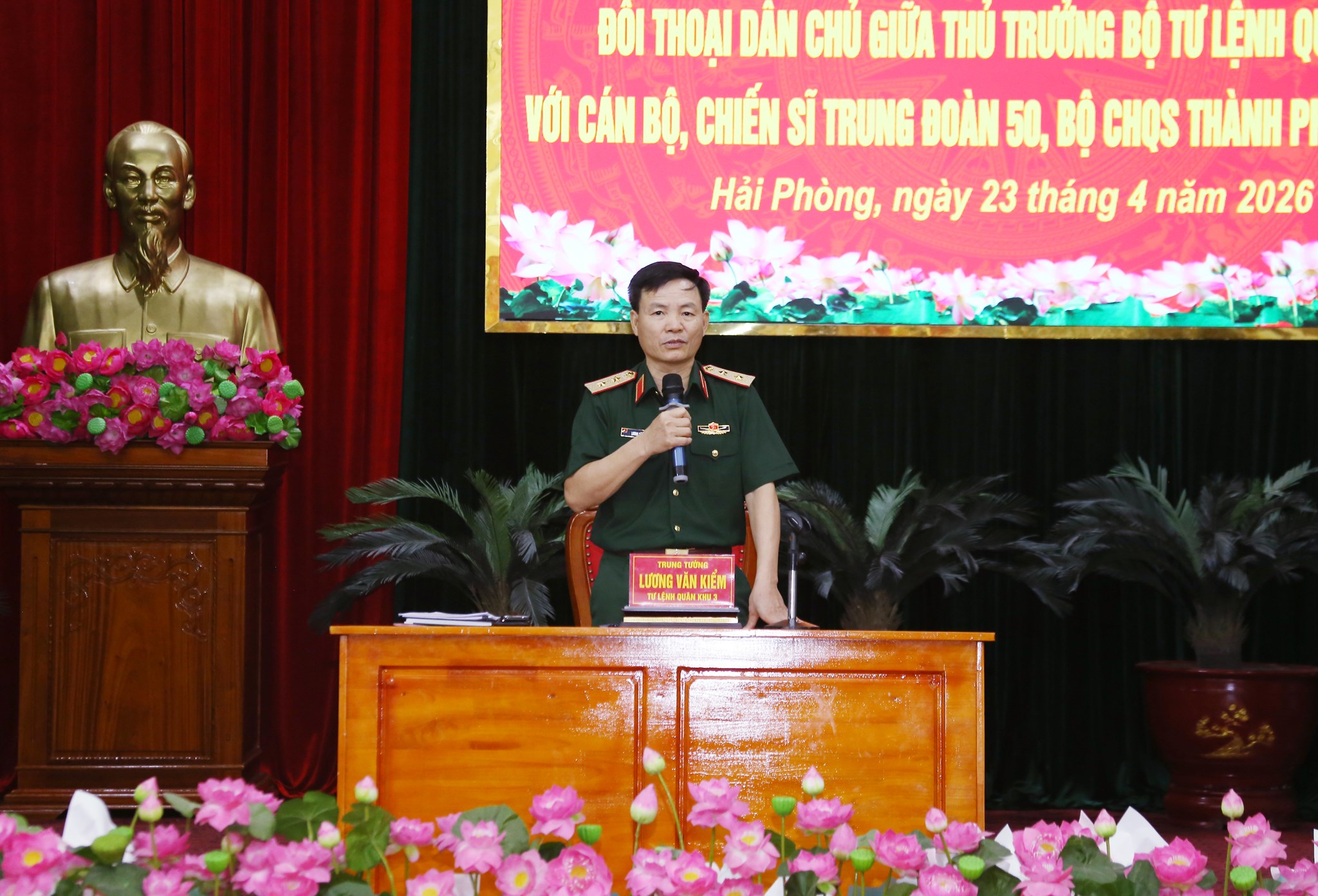 Sáng 23/4, tại Trung đoàn 50, Quân khu tổ chức đối thoại dân chủ giữa Thủ trưởng Bộ Tư lệnh Quân khu với cán bộ, chiến sĩ Trung đoàn. Trung tướng Lương Văn Kiểm, Phó Bí thư Đảng ủy, Tư lệnh Quân khu chủ trì và trực tiếp đối thoại với cán bộ, chiến sĩ. Cùng dự đối thoại có Thủ trưởng 3 cơ quan Quân khu; chỉ huy các phòng chức năng Quân khu và Thủ trưởng bộ CHQS thành phố.